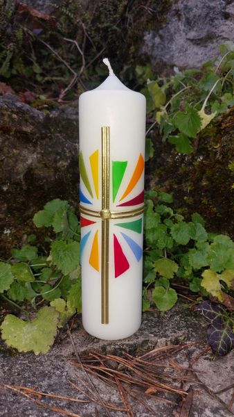 Die Osterkerze 2026 kann für CHF 10.- ab dem Palmsonntag auf dem Sekretariat in Aesch gekauft werden.